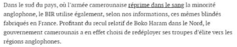 Nous avons ici l’origine du courroux de la campagne intitulée « French Arms », contre le Cameroun et son unité d’élite, le BIR.
